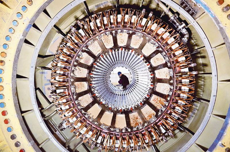 哈电集团电机厂具有从3兆瓦到1300兆瓦级全系列的汽轮发电机产物,其自从研制的第三代煤电汽轮发电机分析机能达到国际先辈程度。图为2025年2月1日拍摄的哈电集团电机厂出产的汽轮发电机定子。 日报供图 郭俊峰/摄。